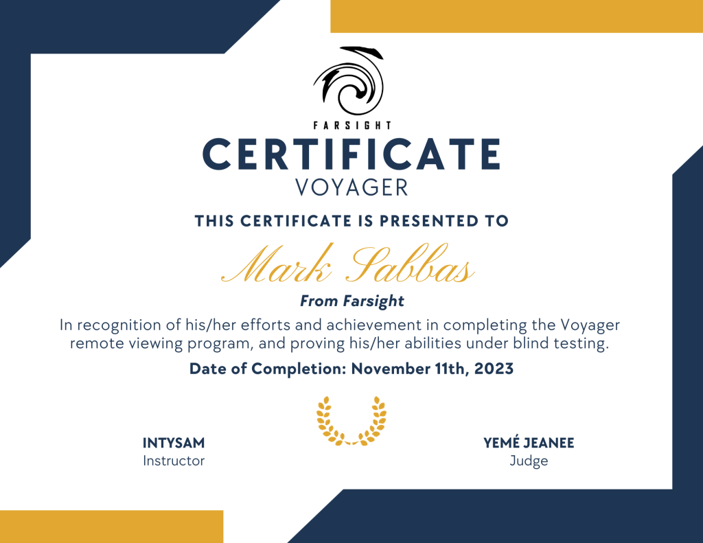 I was happy to say that I passed, but this is not anything particularly special: what the Stanford research explicitly showed is that anyone can be trained to be accurate in this ability, whether or not they consider themselves “psychic.” The Voyager certification is only the most basic level of Farsight’s instruction program (their training is pretty rigorous!) and I have a lot of work to do before I consider myself anything close to an expert remote viewer.